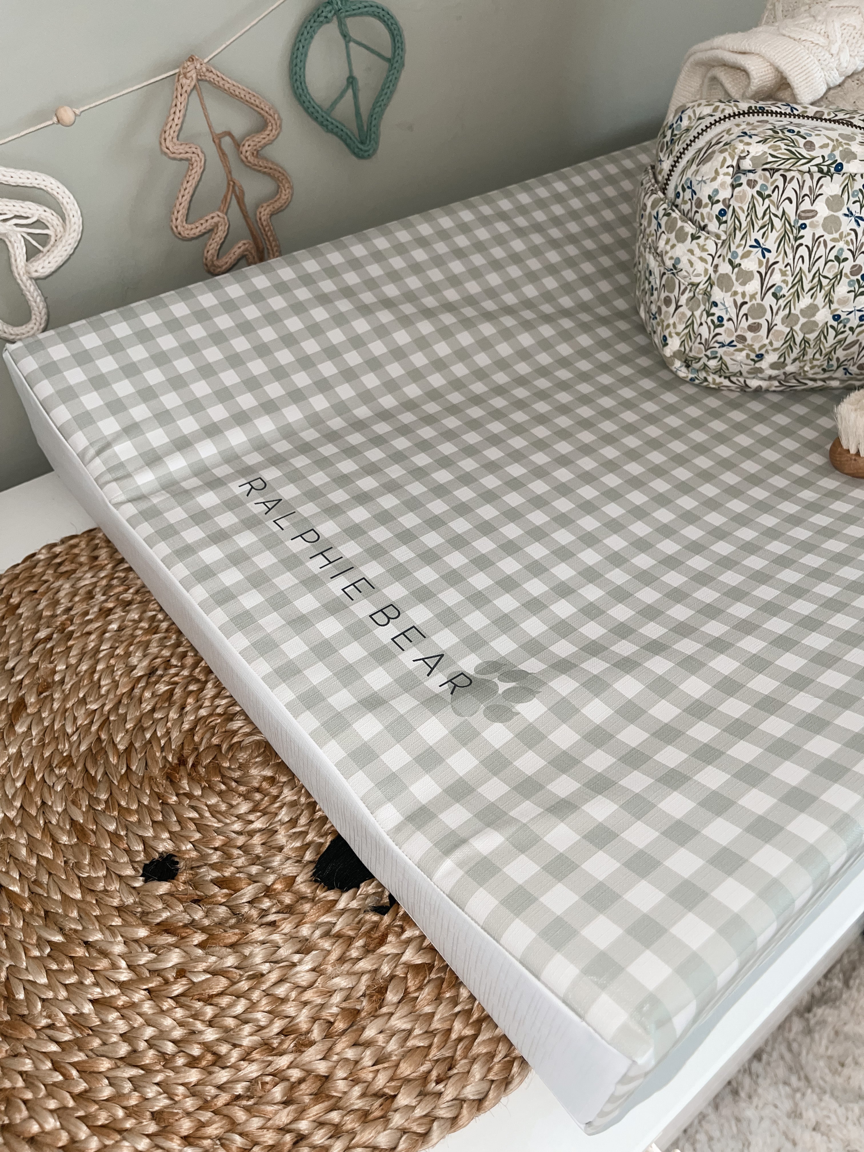 The Ralphie Bear Gingham print is available in sage green or pink we also have matching items - why not see our Gingham print muslins or add a travel mat to your anti-roll mat to take advantage of our special bundle price?