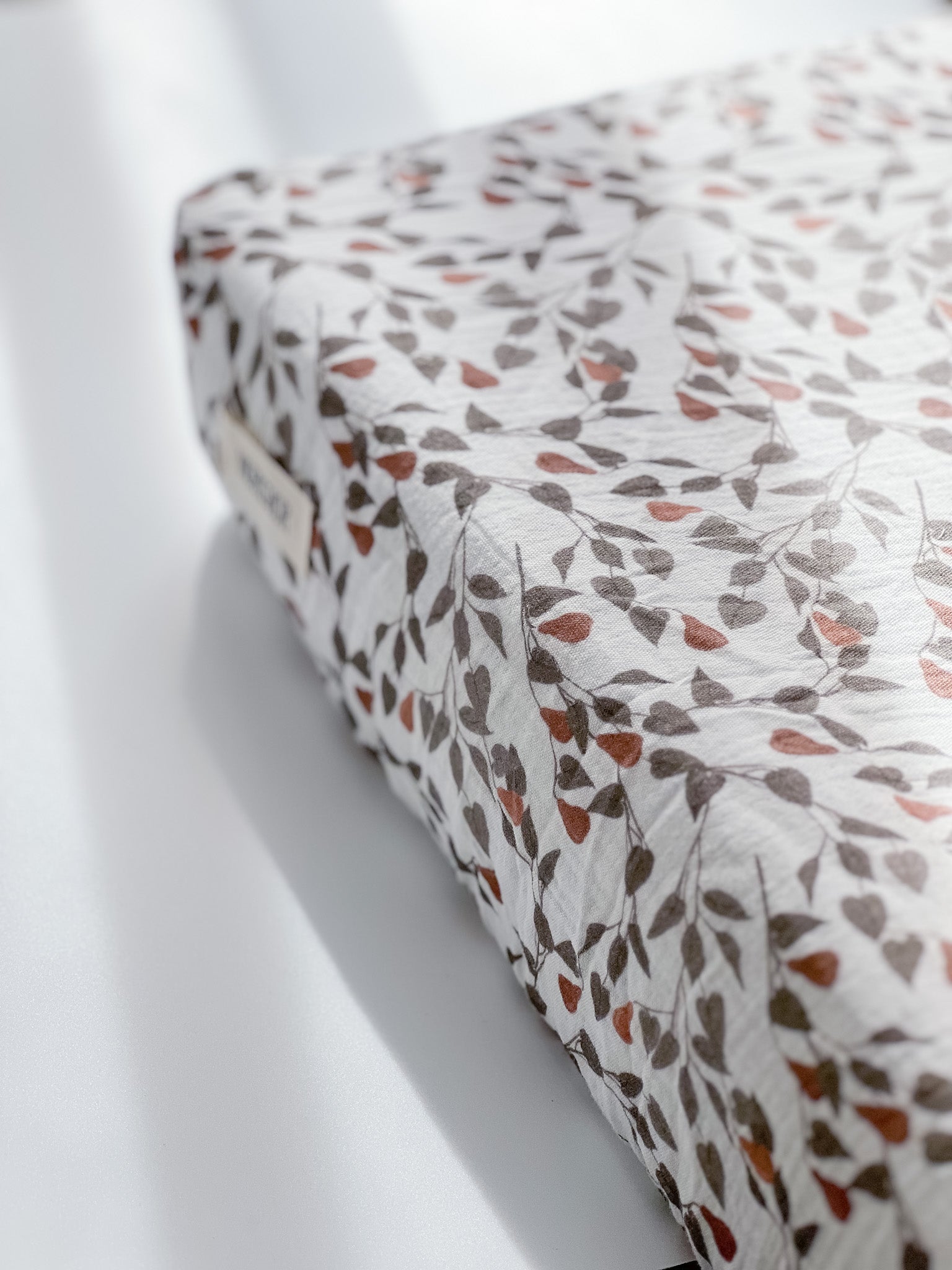 Nestle your little one in softness with this Forest Pear muslin fitted cot bed sheet. The muslin fabric is easy to care for, becoming softer with every wash, ensuring long-lasting comfort for your child.