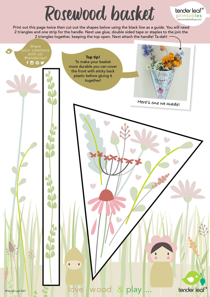 With a rose coloured roof, opening front doors and a removable back panel, this little wooden dolls house can be carried to be played with anywhere. Decorated on all sides with beautiful wild flowers, and two cut out windows which allow the flower stems to run through creating a magical woodland meadow.