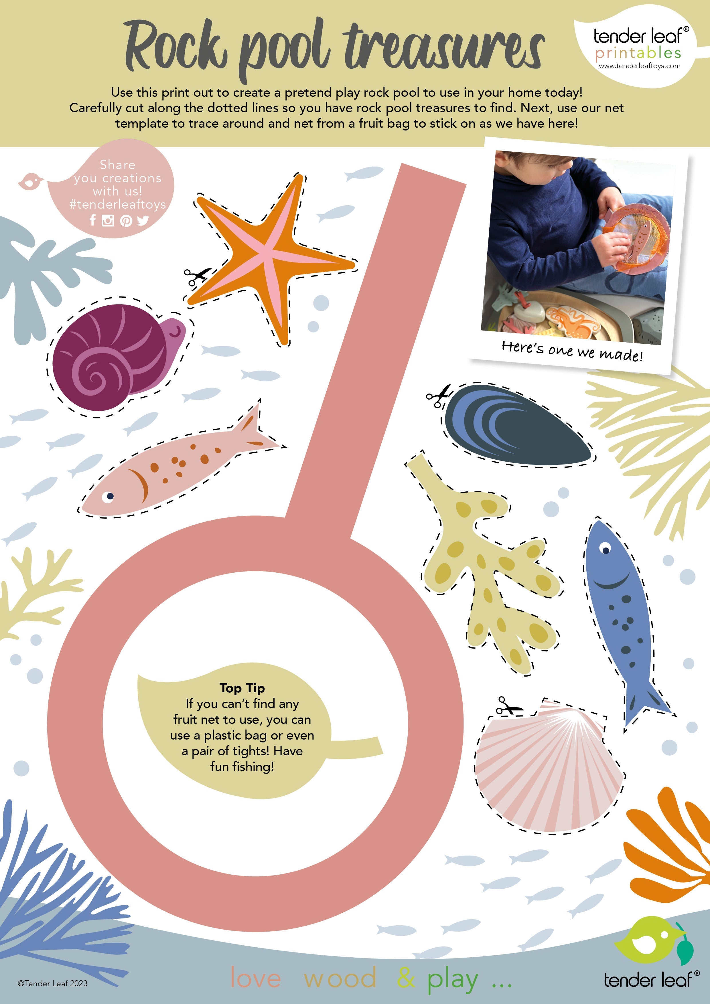 This is a beautiful plastic-free Montessori toy, reminiscent of the seaside, rock pools and summer days at the beach. All the pieces of beautifully painted wood can be stacked, sorted and played with in this layered wooden rock pool base. A classic tinker tray toy with an innovative twist on play. This toy box supports creative learning and story telling whilst creating their own sandy landscape! With the coral pieces you can make a 3 dimensional ocean world for your fish families to live in.