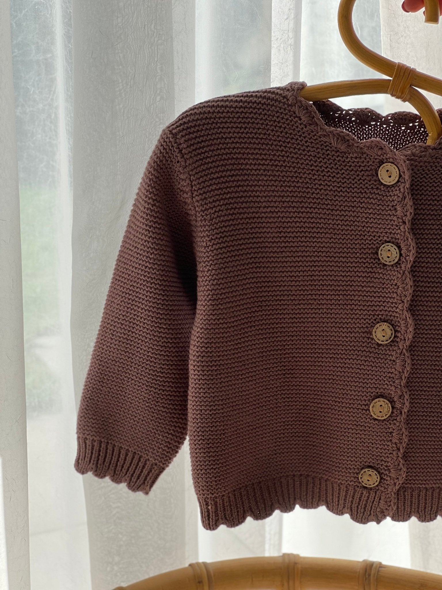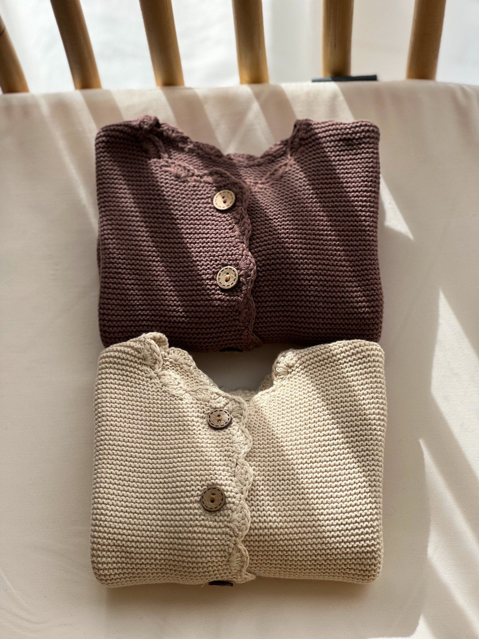 Classic unisex baby cardigan in a soft, textured knit will become a truly treasured keepsake to be used all year round.