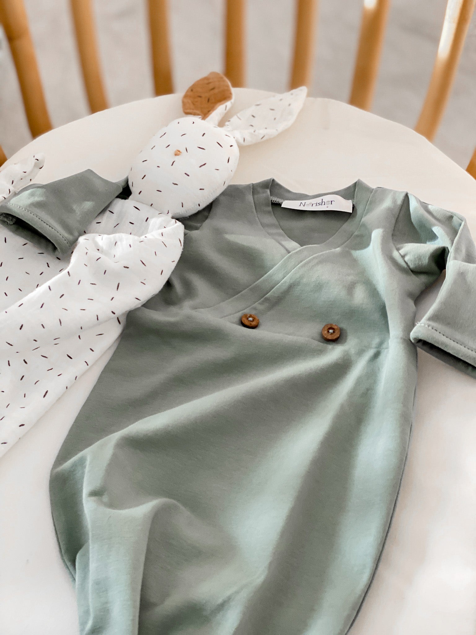 A baby is more likely to sleep and feel settled when they are comfortable. In the womb your baby felt warm and secure. Our knotted gown recreates the womb feeling by providing a tight, warm and cozy fit.