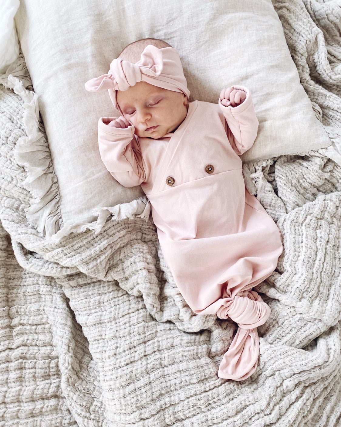 Match your new baby gown with a topknot headband here or with a top knot baby beanie here