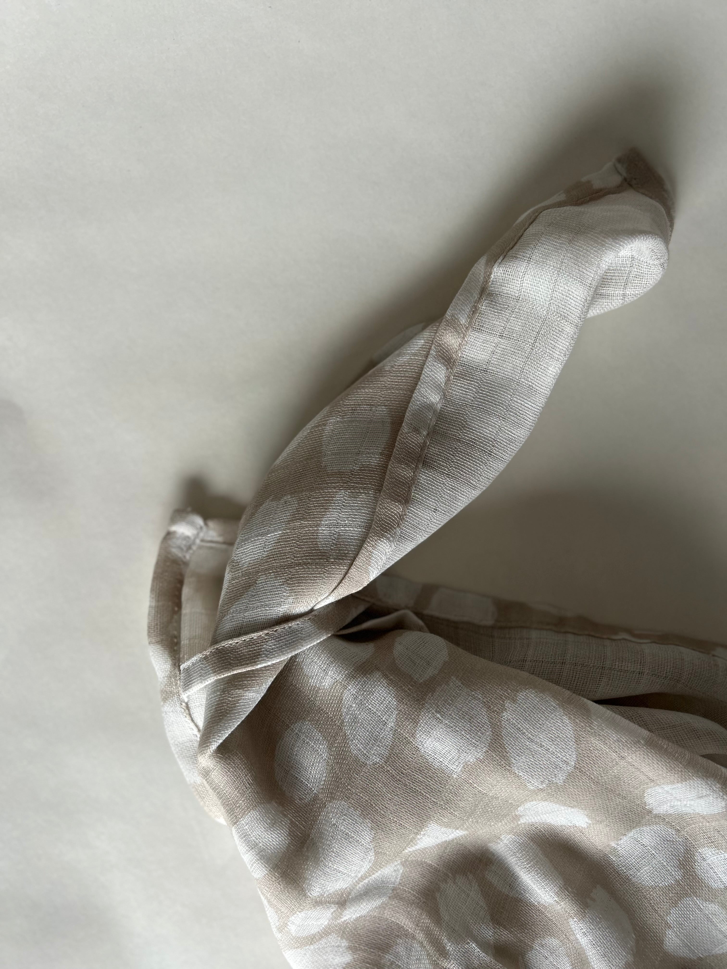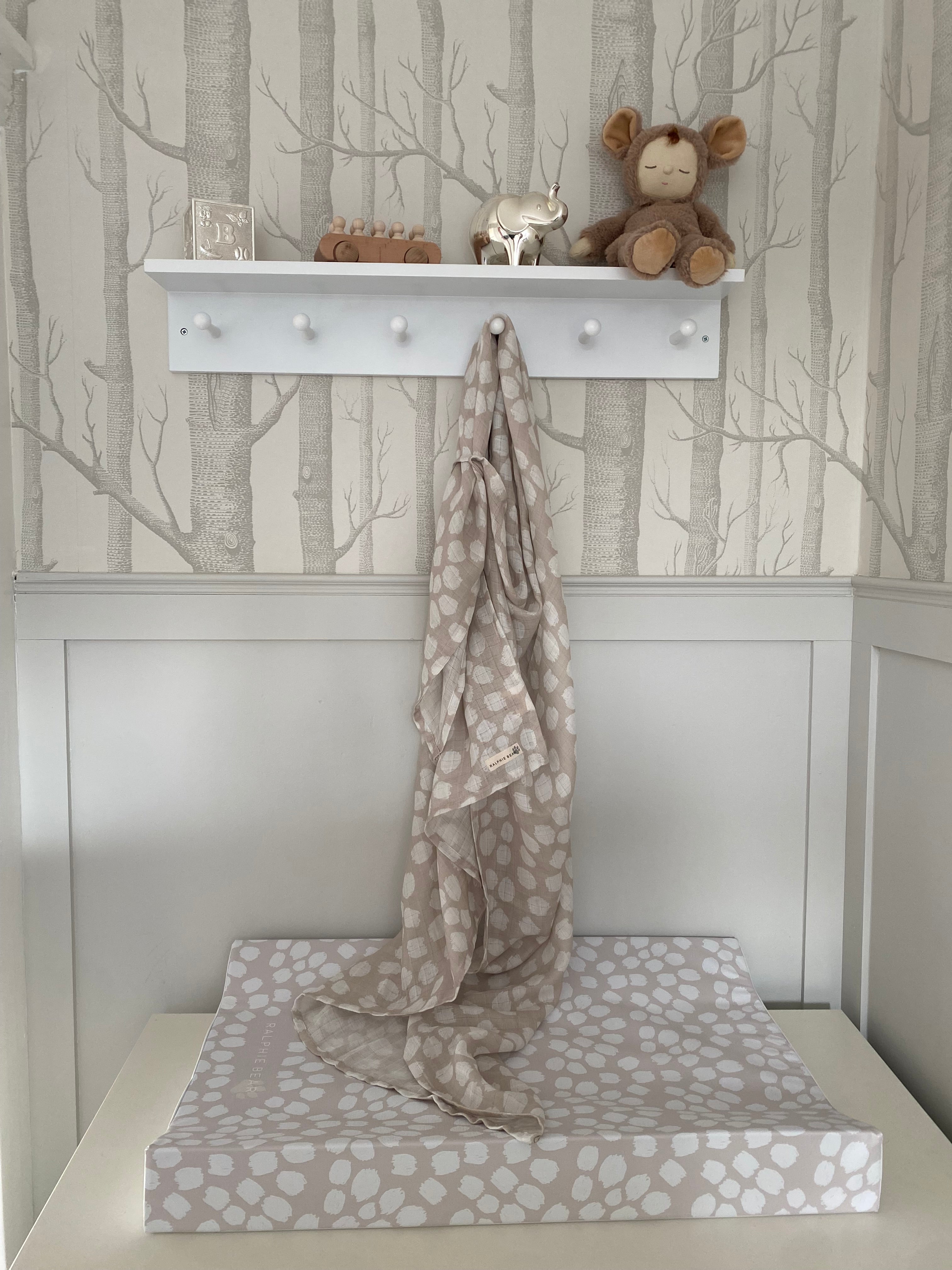 Part of our Sandy Collection featuring our popular Scallop print, these large swaddles are a baby essential or also make a gorgeous gift for new mums. Use as a breastfeeding cover with the handy loop, a sheet to lay baby on or as a swaddle.