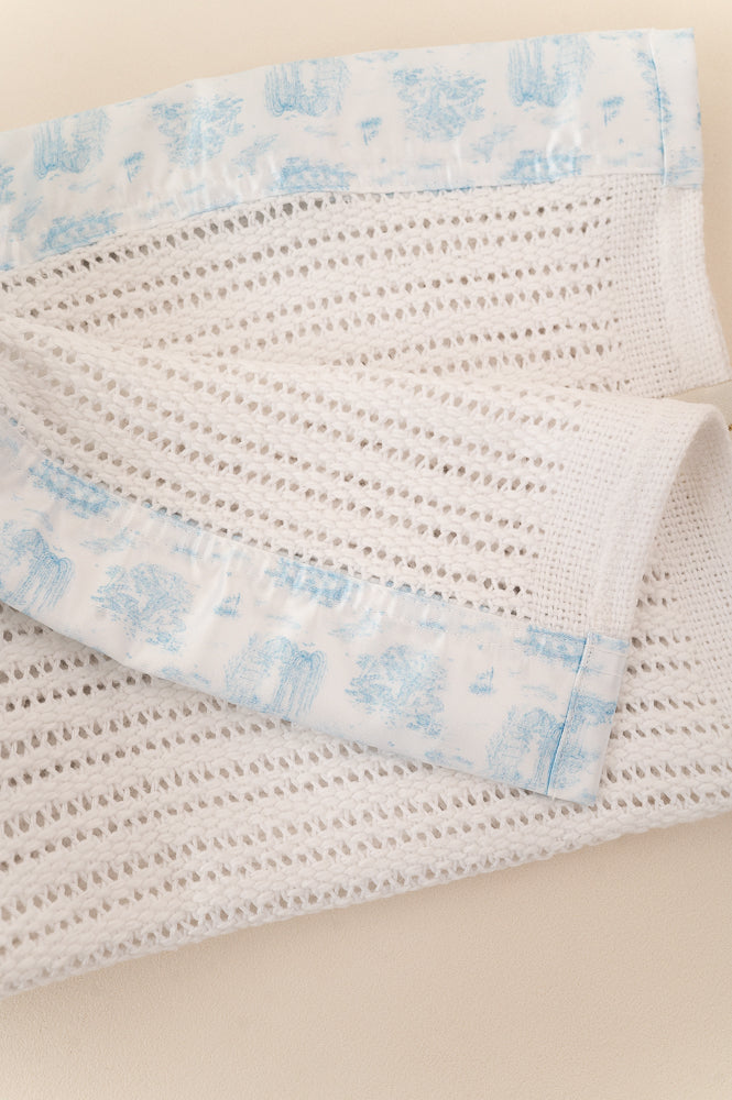 A British tradition! The unique weave of this blanket (called Cellular due to the holes that look like cells) means that air can move through the fibres and warm air stays between the layers. In the summer, the lightweight cotton fibres are breathable and will keep the breeze away without overheating. These have been a mainstay in hospital delivery wards for decades.